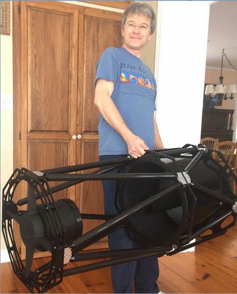 March 2019, I acquired a 16" Ritchey-Chretien (RC) by GSO (Taiwan, makers of TPO & Astro-tech). HighPoint Scientific of New Jersey had a sale I couldn't ignore and so I advanced my plans by two years. It arrived extremely out of colimation, and since I didn't have a functional mount, it will take some time before I collimate and test. I will greatly improve the design of both from the lessons learned over two decades. Do I look happy?