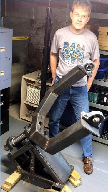 I've progressed much on the fork mount - it is surprisingly large as compared to what it looked on paper! Supports my weight without tipping, despite not bolted to the ground. Will be fitting the 16" on it soon. I used the 3D mill to work these parts, and used gas shielded welding (MIG) myself for the first time.