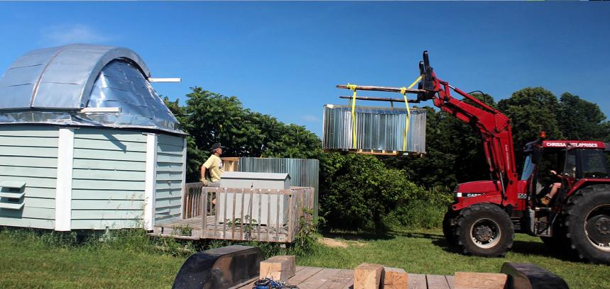 Sept to Dec 2019, with a cracked rib from falling onto the fork doing gymnastics half way through installing the mount, my helper and I attached the scope in the dome. It fills it, all 300 lbs of scope and mount, a handsome scientific tool.